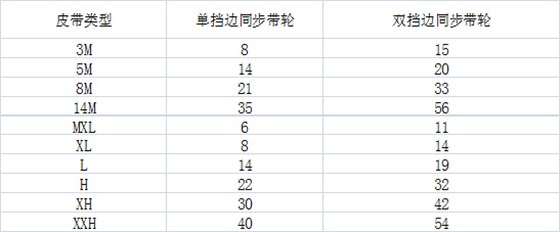 只有一個同步帶輪有擋邊或者是二個同步帶輪都有擋邊的情況下,根據(jù)同步帶選型號選定中心距預(yù)留調(diào)整量。